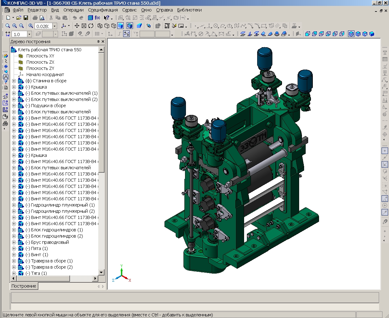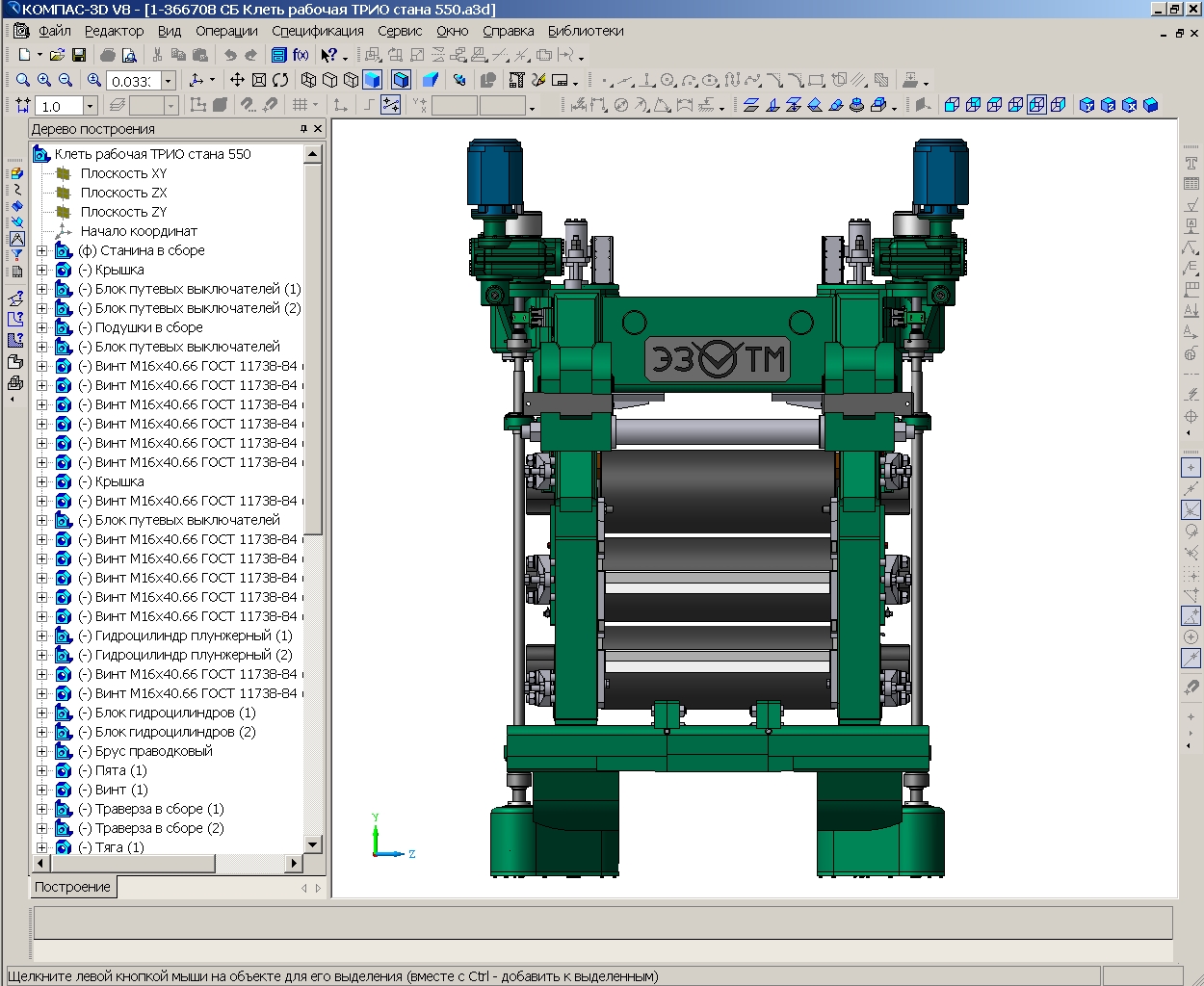 Клеть входит в состав сортового стана линейного типа. В настоящий момент клеть рабочая ТРИО стана 550 изготовлена и работает на одном из металлургических предприятий РФ. На изделие подана заявка на изобретение.