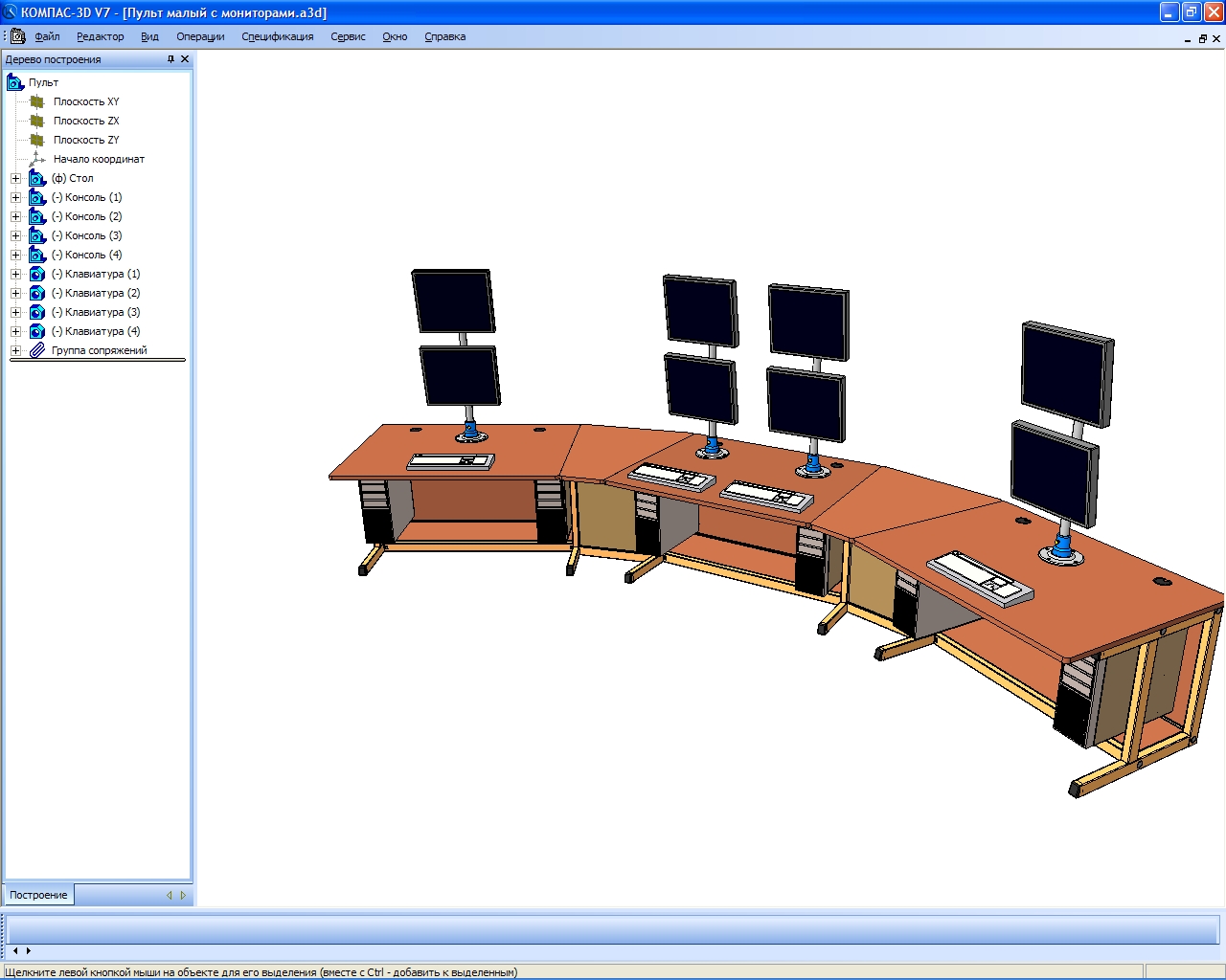 До 18 рабочих мест операторов газового промысла. Варьируя элементы, можно собрать стол для любого количества рабочих мест, учитывая особенности конкретного помещения.