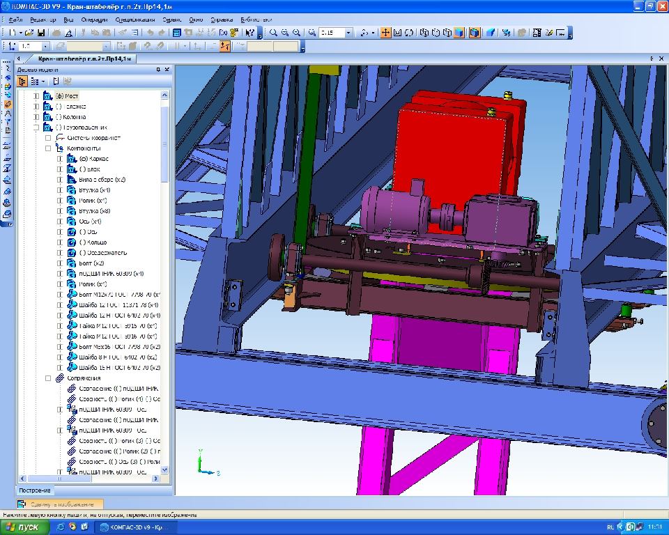 Кран-штабелёр мостовой электрический двухбалочный однопролётный опорный