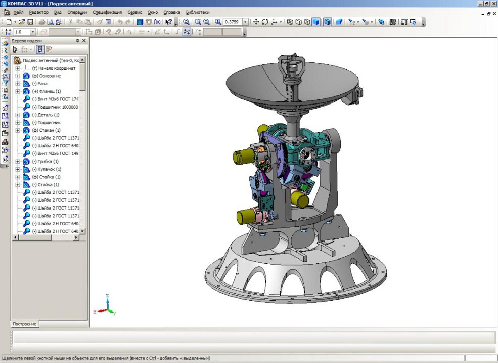 Подвес предназначен для обеспечения управления антенной объекта в двух плоскостях