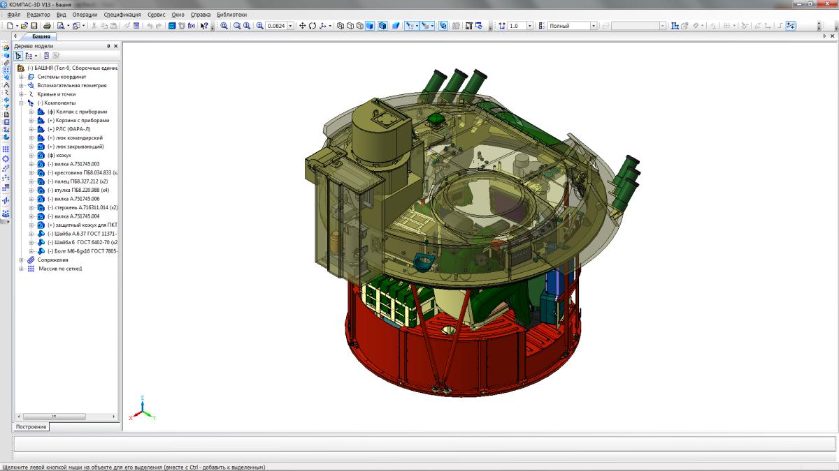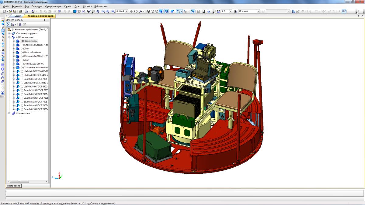 Модуль наблюдения кругового вращения предназначен для размещения экипажа, приборов наблюдения, связи, ЭВМ и органов управления