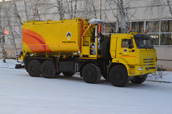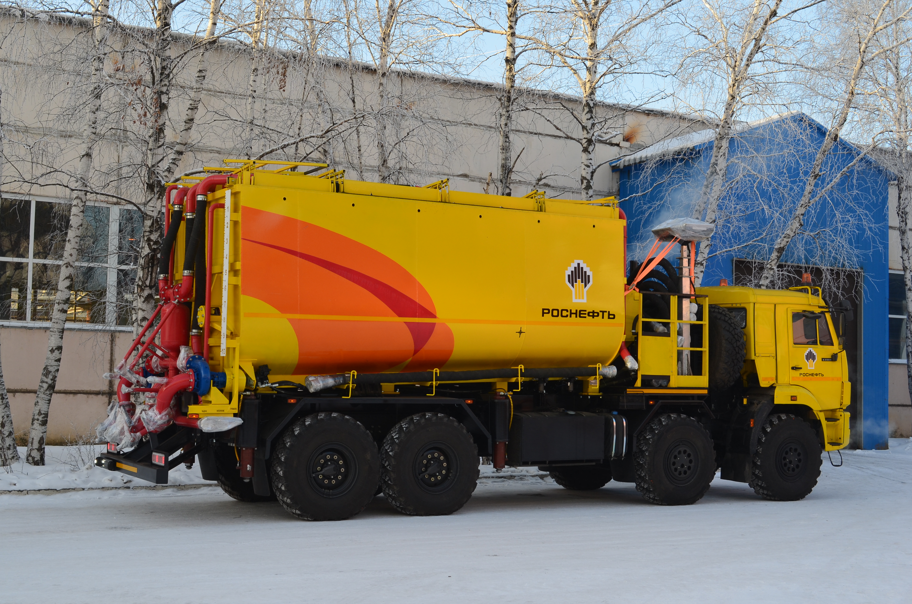 Установка осреднительная передвижная УОП-20 выполнена на базе четырехосного автомобиля КАМАЗ. Изделие предназначено для стабилизации параметров тампонажных (цементных) растворов и других песчано-жидкостных смесей.