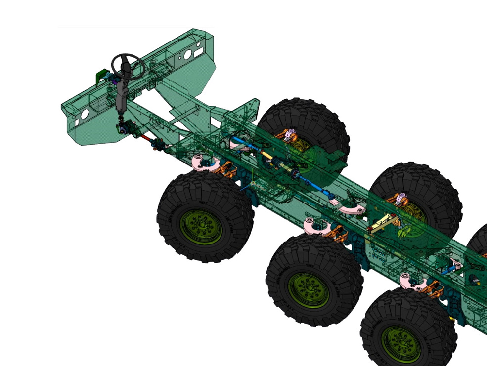 Анимация, демонстрирующая работу рулевого управления и подвески шасси с формулой управляемости 1-2-3-0-0-0.