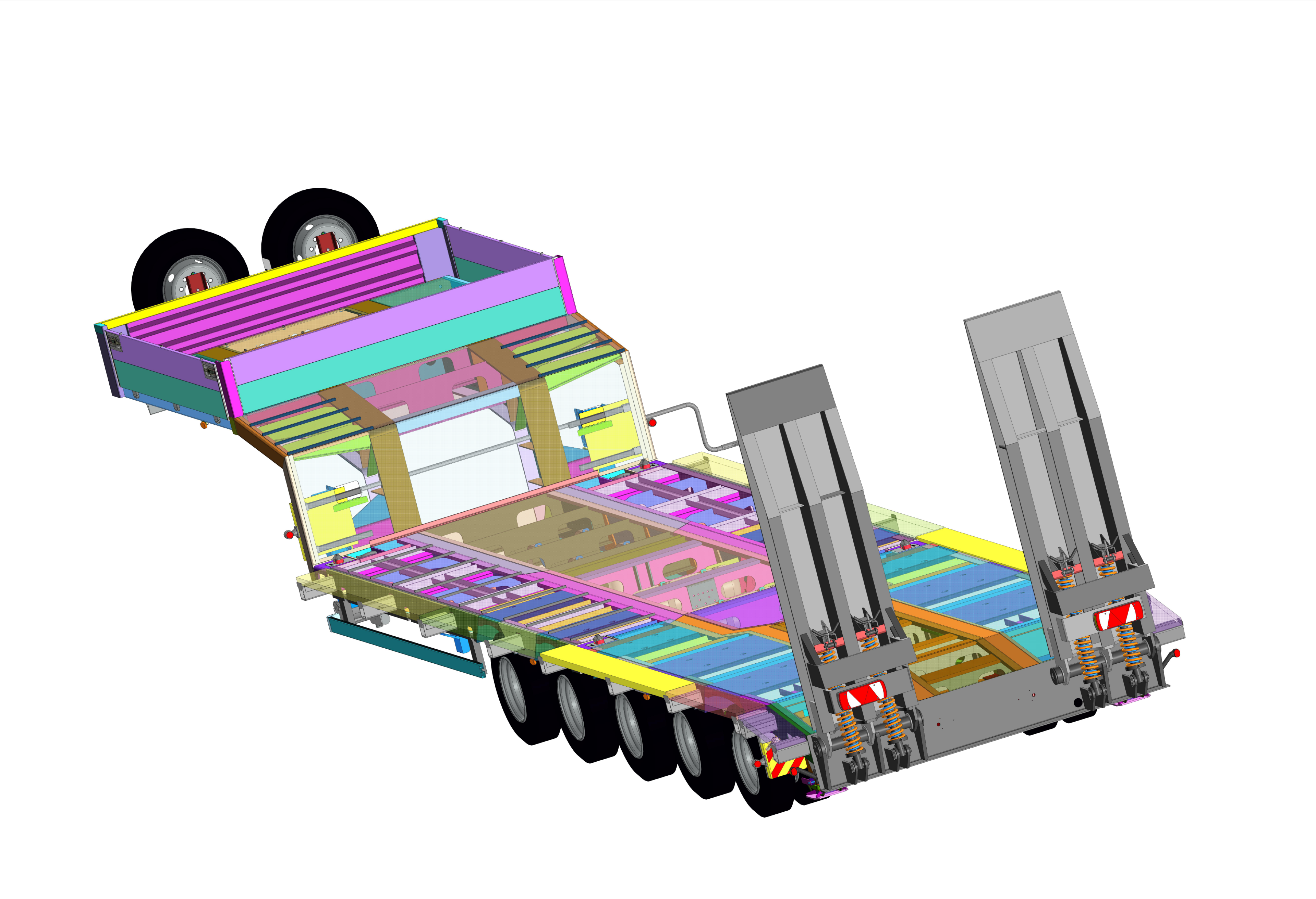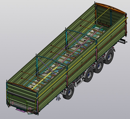 Полуприцеп-тяжеловоз TR-51. Предназначен для перевозки по автомагистралям грузов различного назначения до 60 т двух- и трехосным тягачем. Особенности: механические трапы, пятиосное исполнение, 2 поворотных задних оси, уширители.