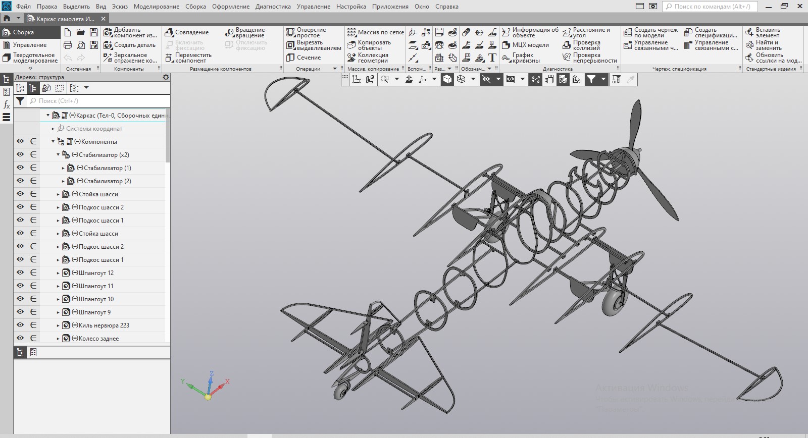 Каркас самолета ИЛ-2 в масштабе 1:10 для печати на 3D-принтере. Распечатанные детали собираются в полноценный каркас, который затем можно обтянуть и раскрасить по своему желанию. Имеется возможность движения руля поворота, руля высоты, винта, а также убираются-выдвигаются колеса основного шасси