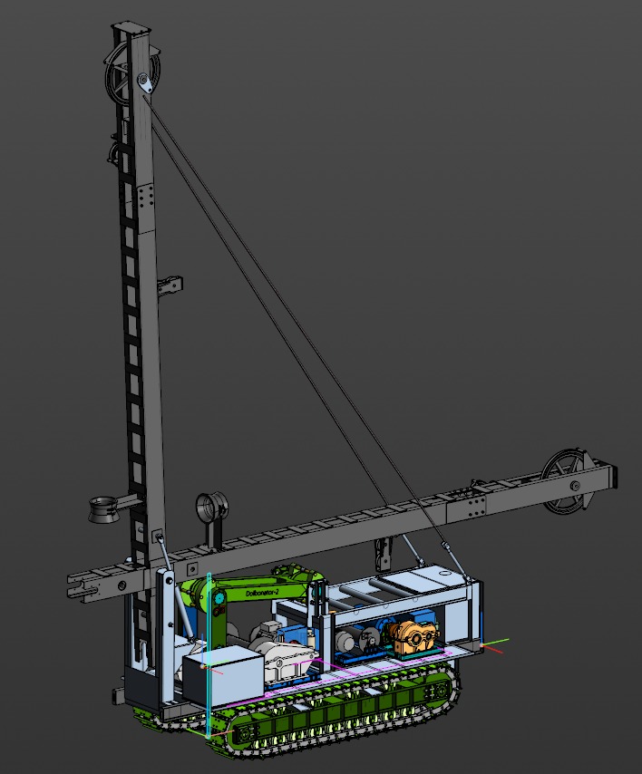 Машина предназначена для задалбливания снаряда на глубину до 250 м и используется на Крайнем Севере. Только такой метод бурения эффективно показывает себя в условиях вечной мерзлоты. Знающие люди говорят: "Долбонатор долбит — геологоразведка идёт". Создано по заказу ООО "ГММ" Красноярск