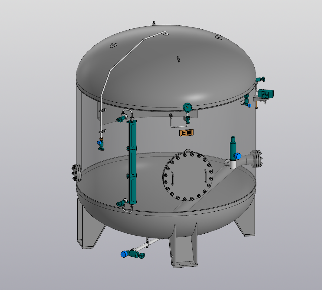 ИУШД.061611.121 - Пневмоцистерна - герметический резервуар, в нижней части которого находится вода, а в верхней – сжатый воздух. Это позволяет сжатым воздухом вытеснять воду из цистерны в систему водоснабжения и подавать ее под определенным напором в любое помещение судна.