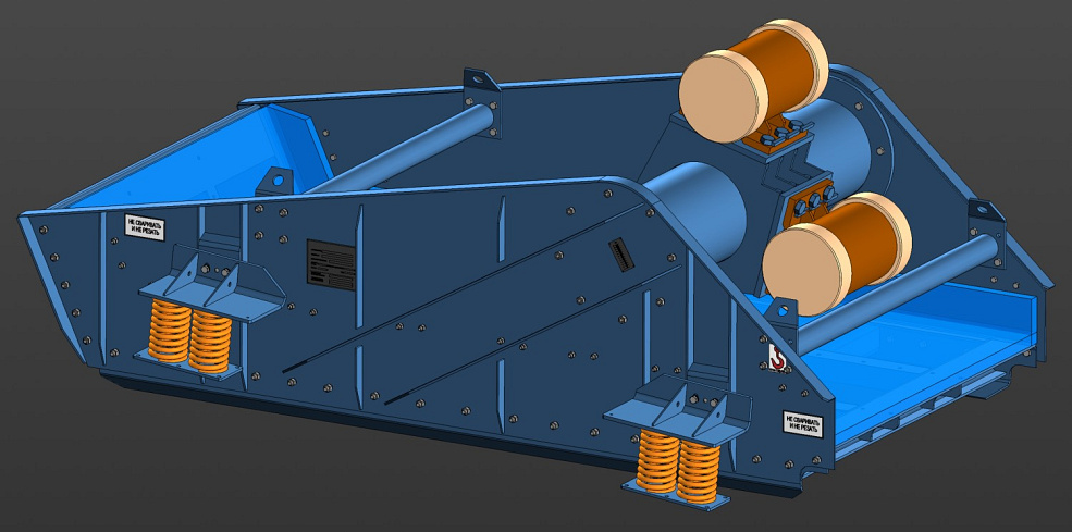 Грохот, является отечественным аналогом выпускаемого FL Smidth продукта. Проект реализован для ООО «ТЕХНОЛОГИЯ И МЕХАНИКА» (timcompany.pro). В ходе проектирования были внесены изменения, направленные на качественное улучшение аналога, относительно оригинала, но сохранена полная взаимозаменяемость.