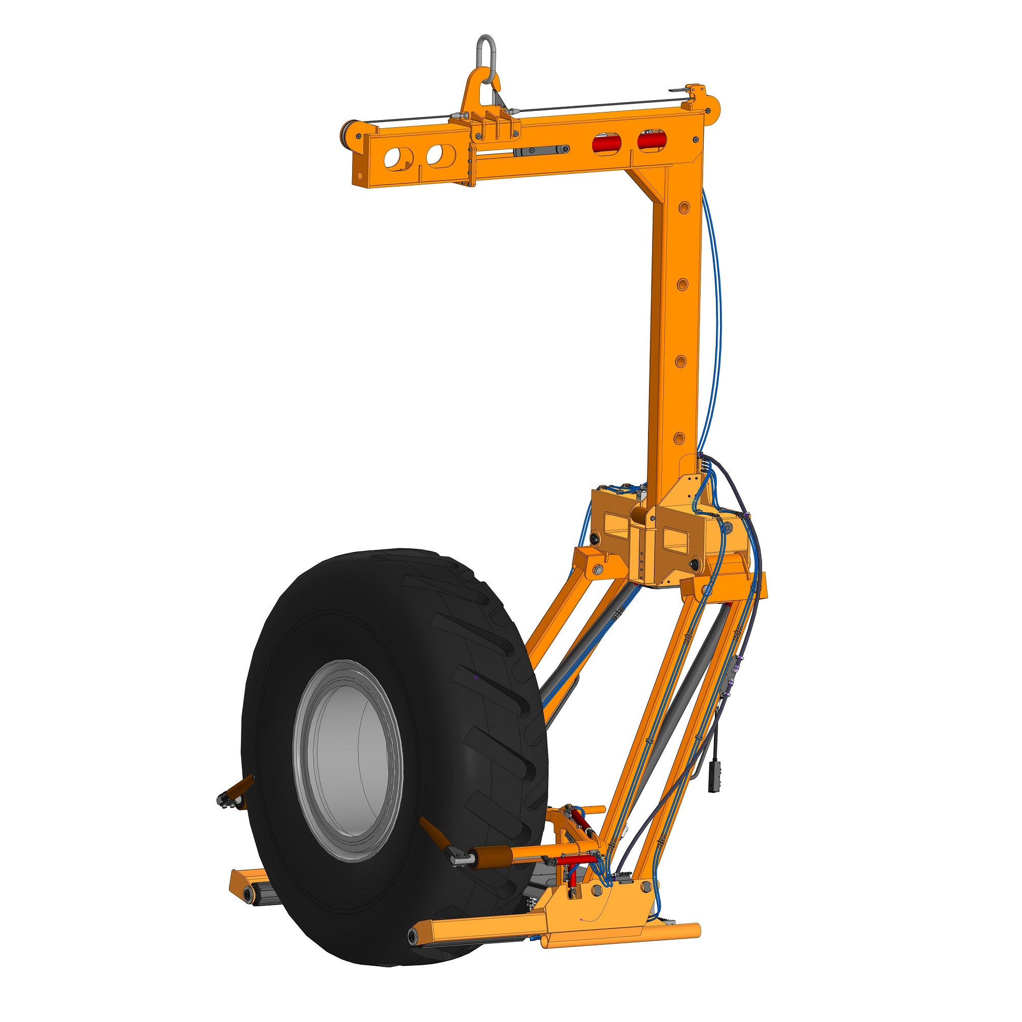 Приспособление предназначено для монтажа и демонтажа колёс большегрузной карьерной техники при помощи крана. Работа с колёсами разного размера R35, R49, R51, R57
