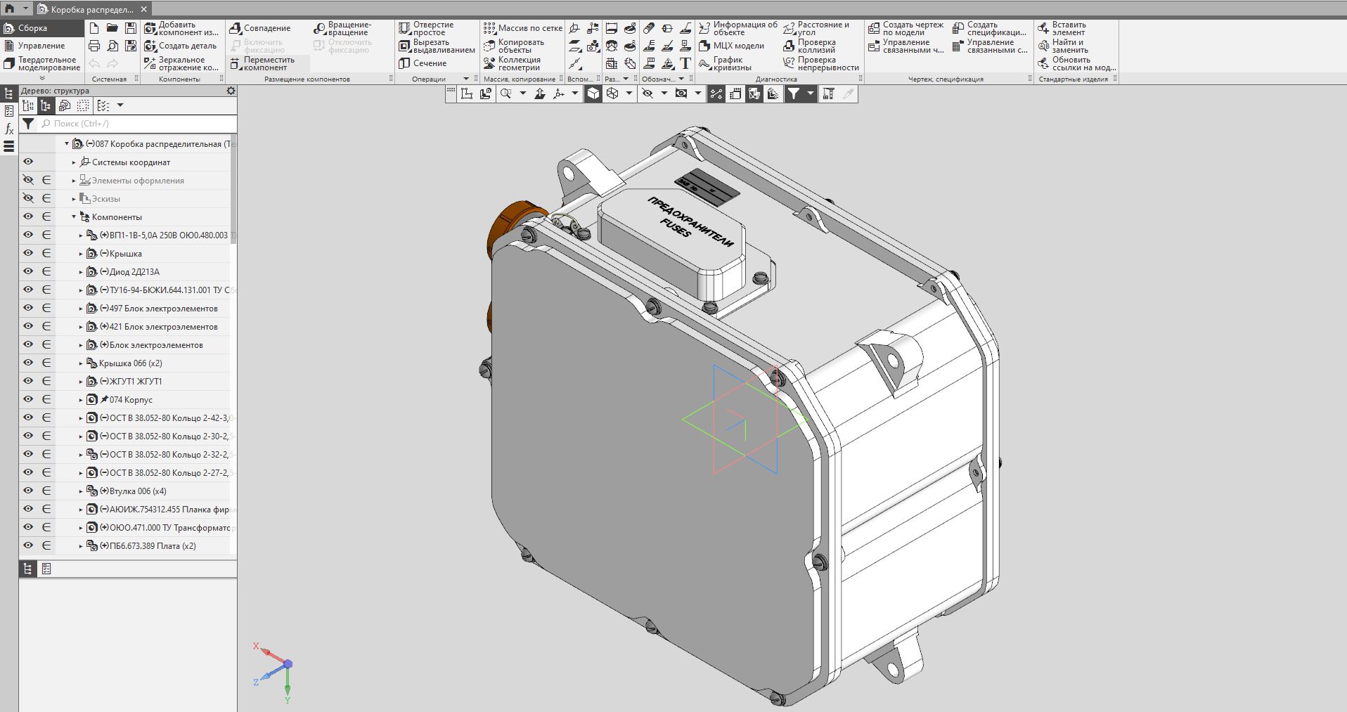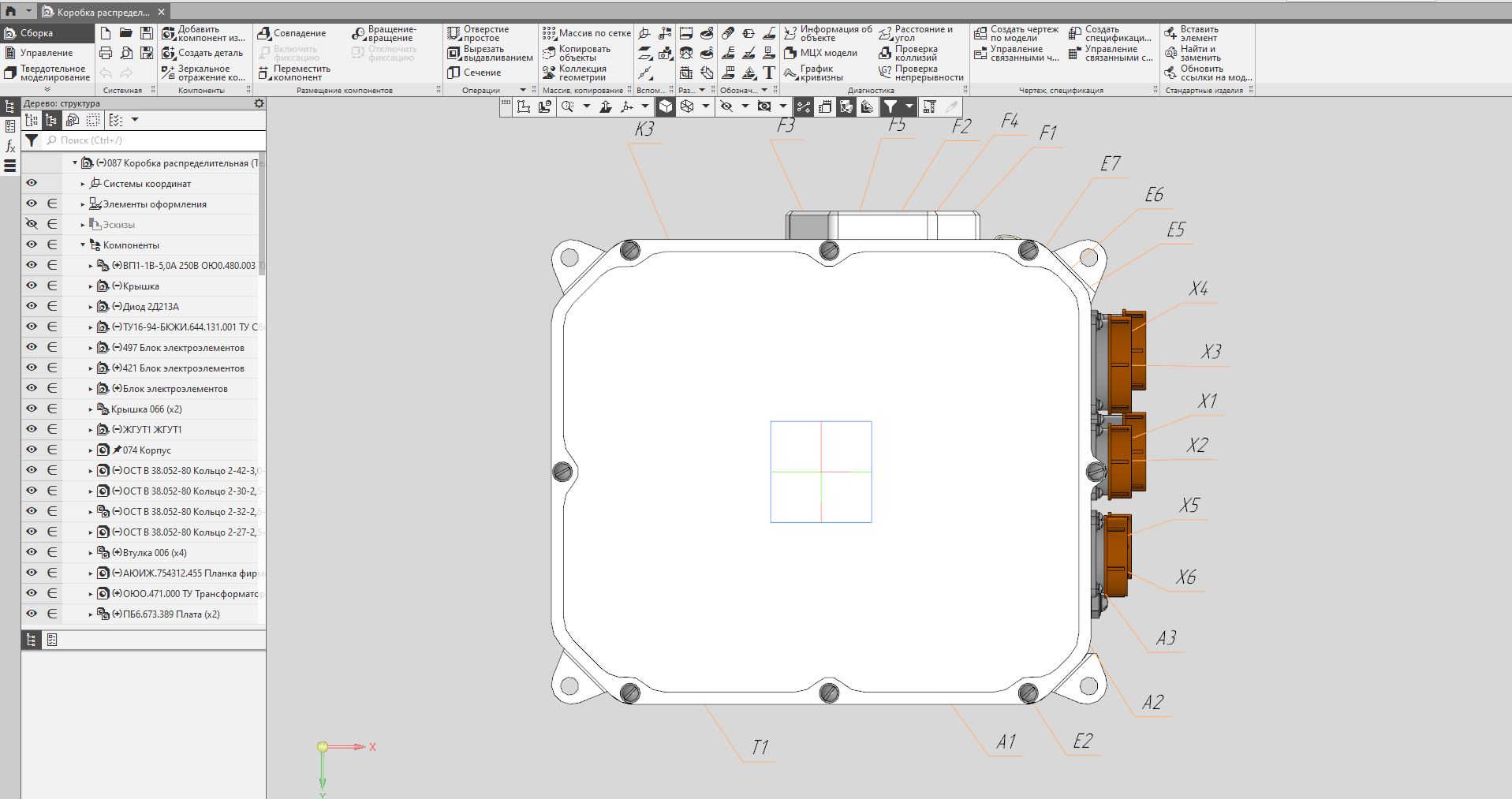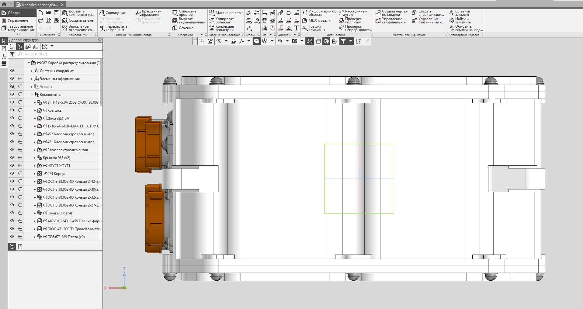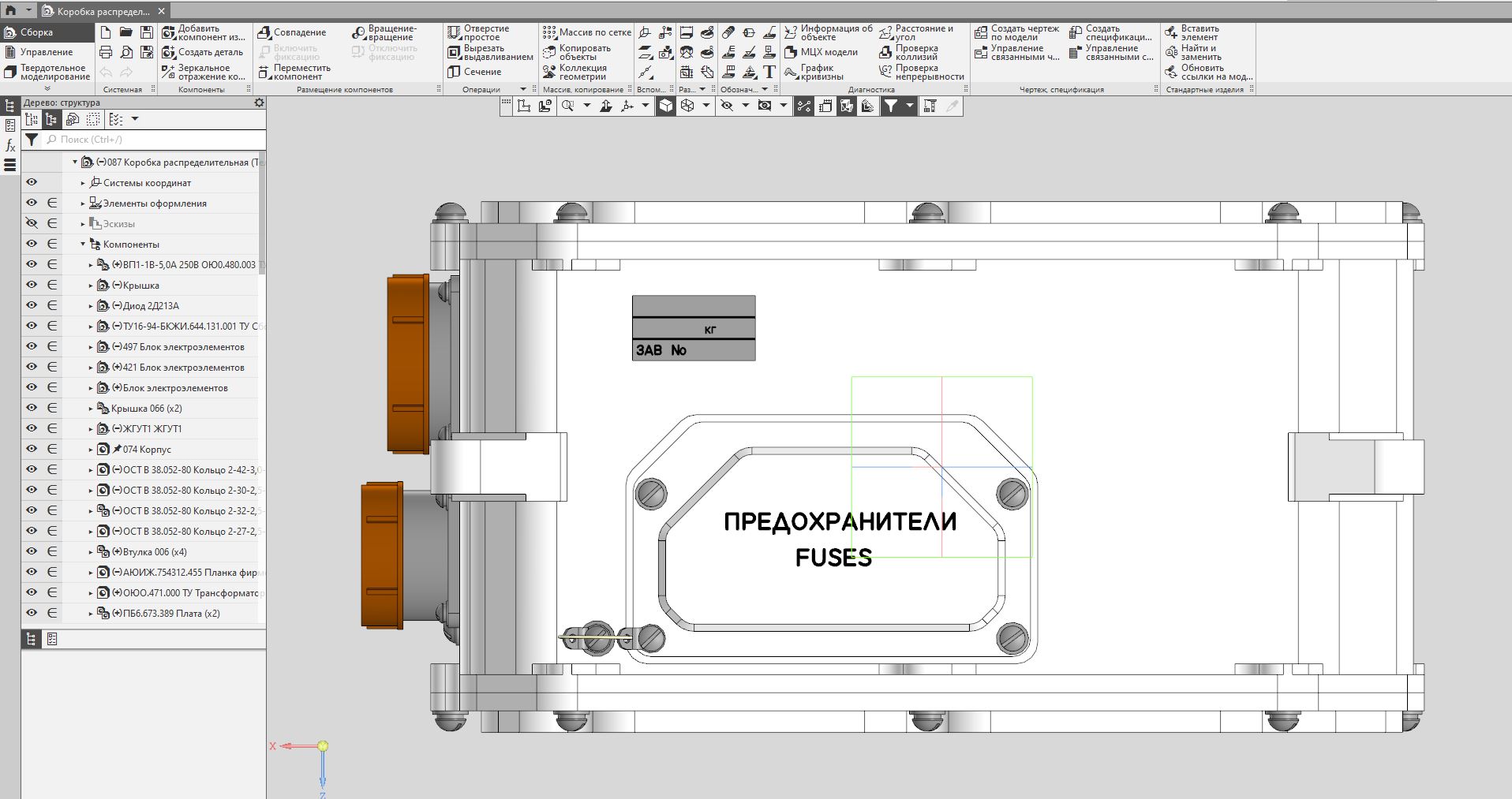 Предназначен для коммутации напряжений питания 220 В 400 Гц и 380 В 50 Гц переменного тока и +27 В постоянного тока, а также для формирования сигналов управления изделием.
