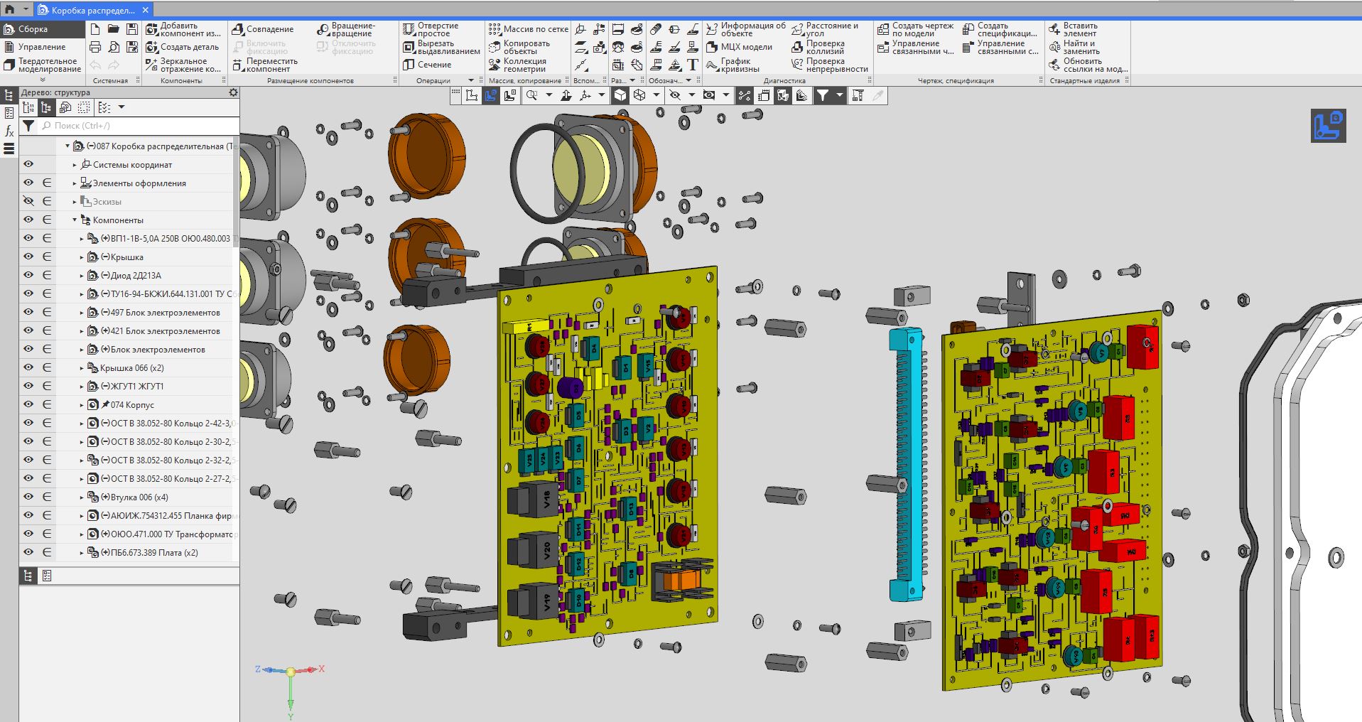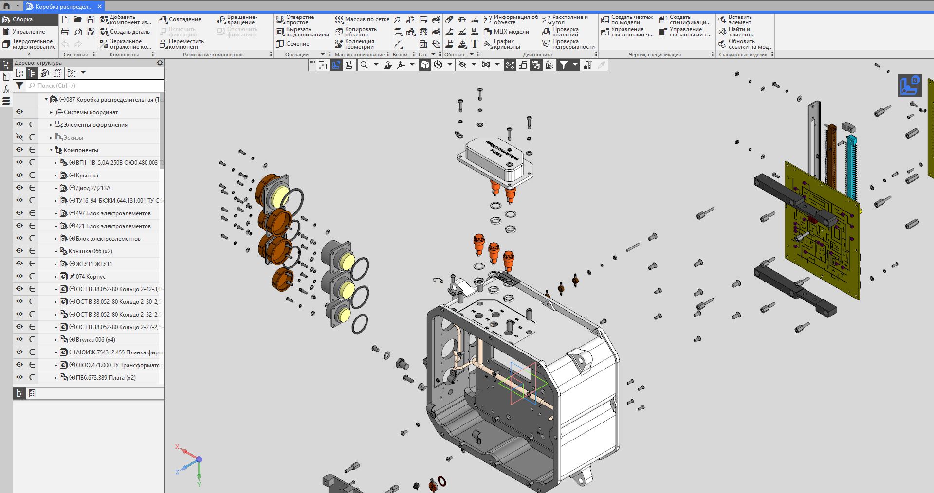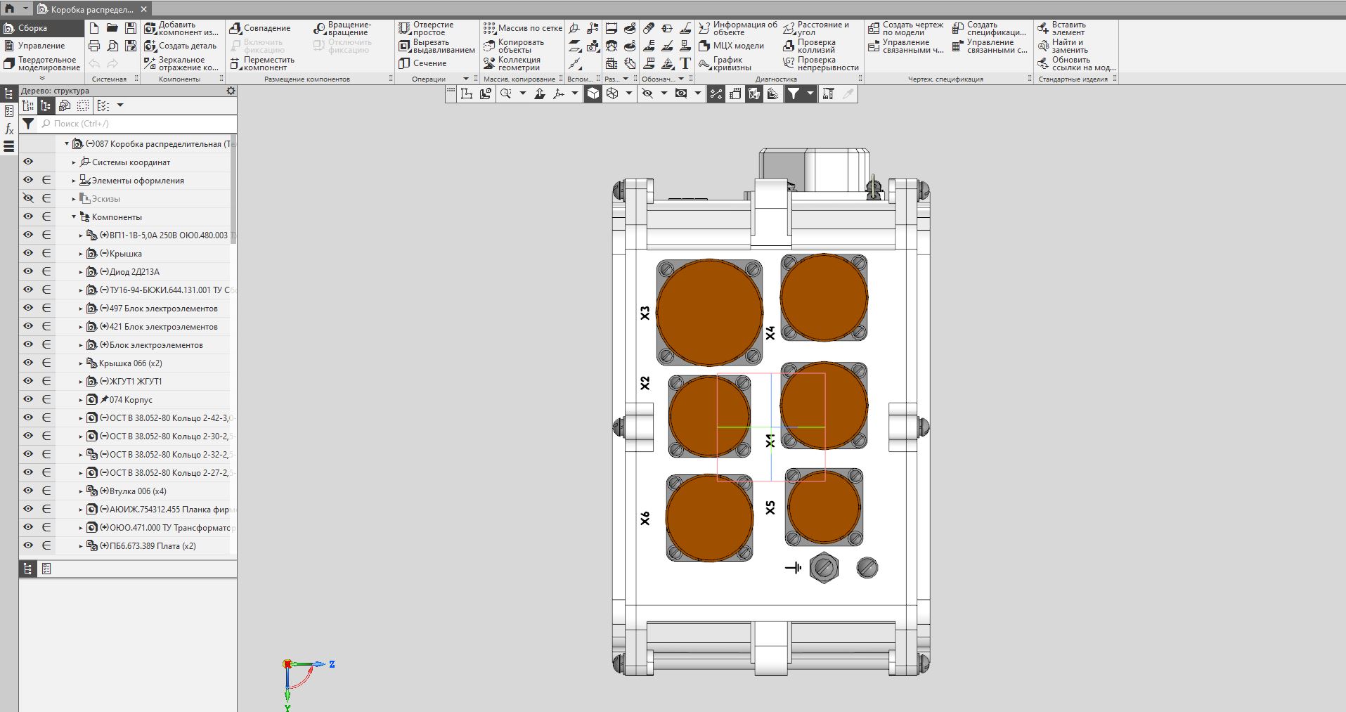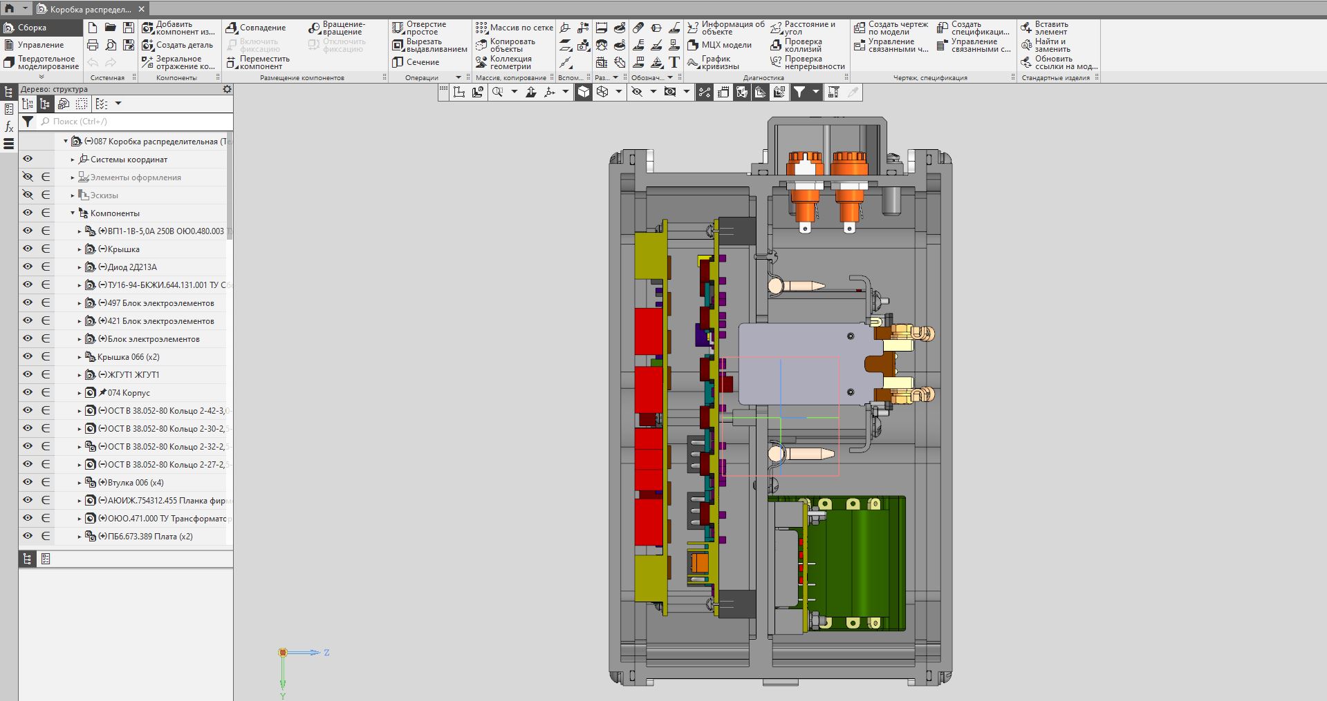 Предназначен для коммутации напряжений питания 220 В 400 Гц и 380 В 50 Гц переменного тока и +27 В постоянного тока, а также для формирования сигналов управления изделием.